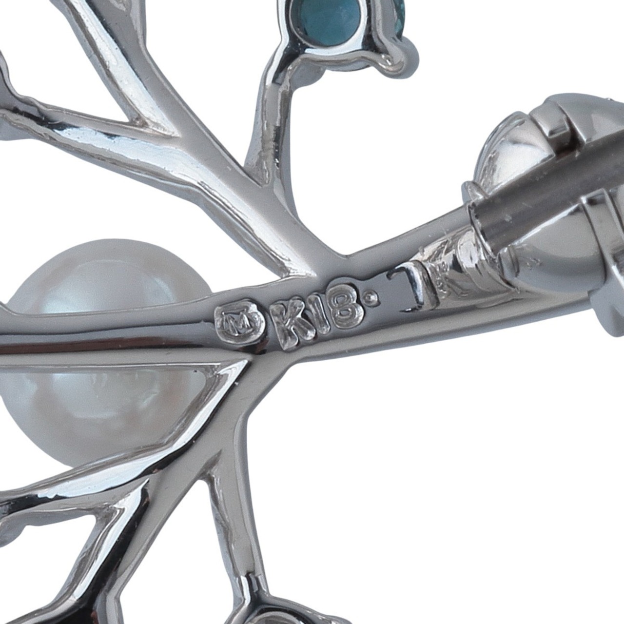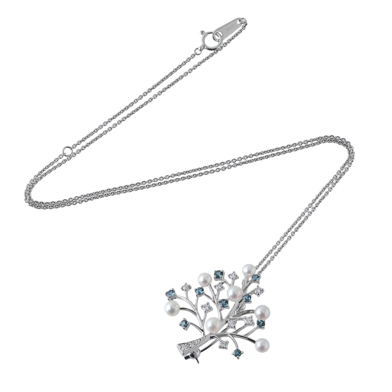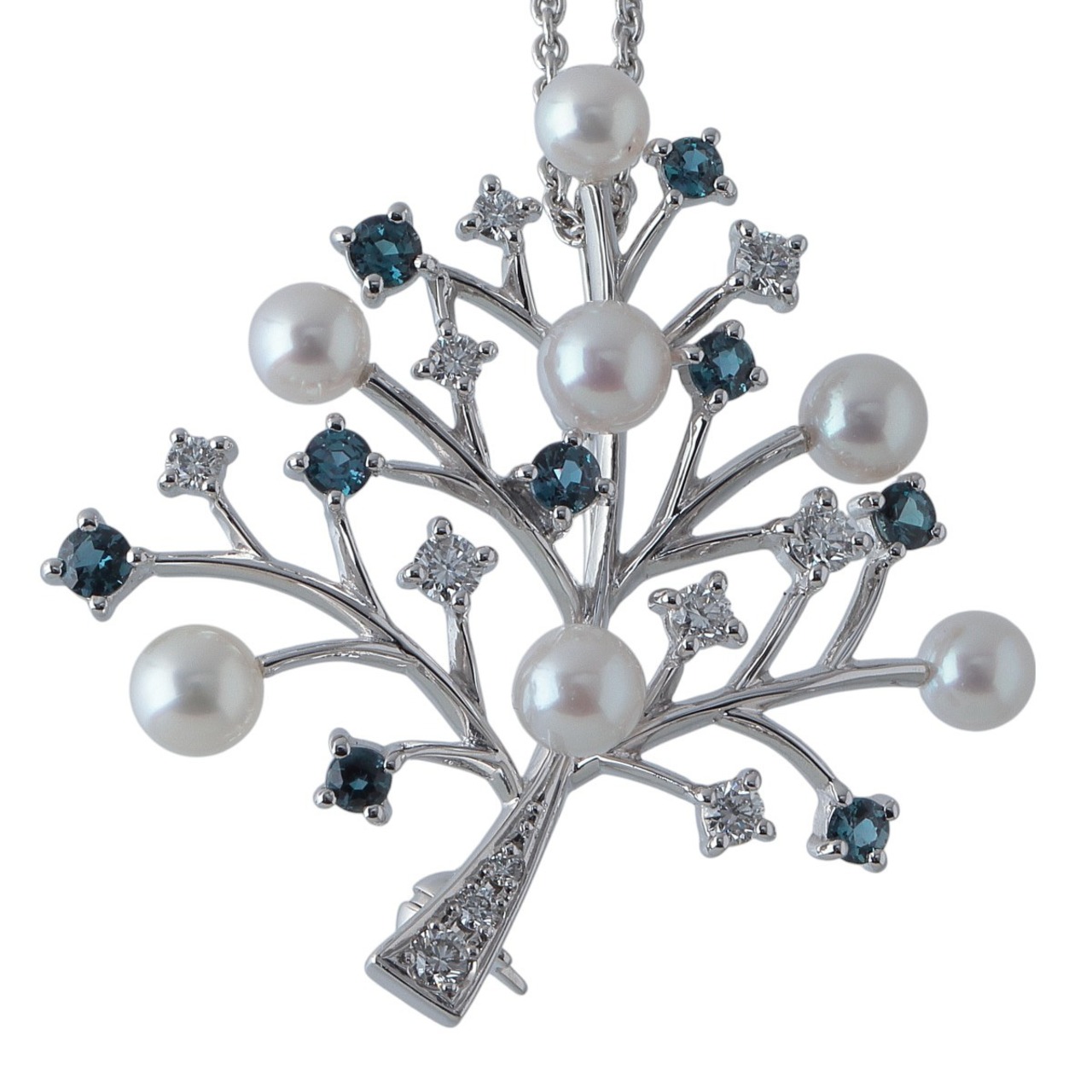 ミキモト ダイヤ アレキサンドライト パール ネックレス ペンダント兼ブローチ ツリーモチーフ アコヤパール3.8mm~4.4mm 45cm K18WG 新品仕上げ済 MIKIMOTO【22791】