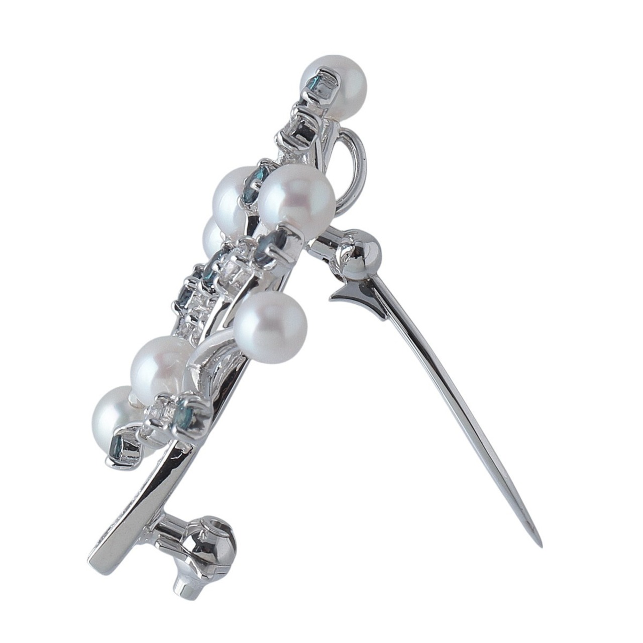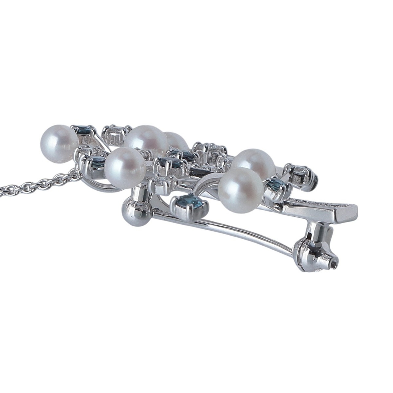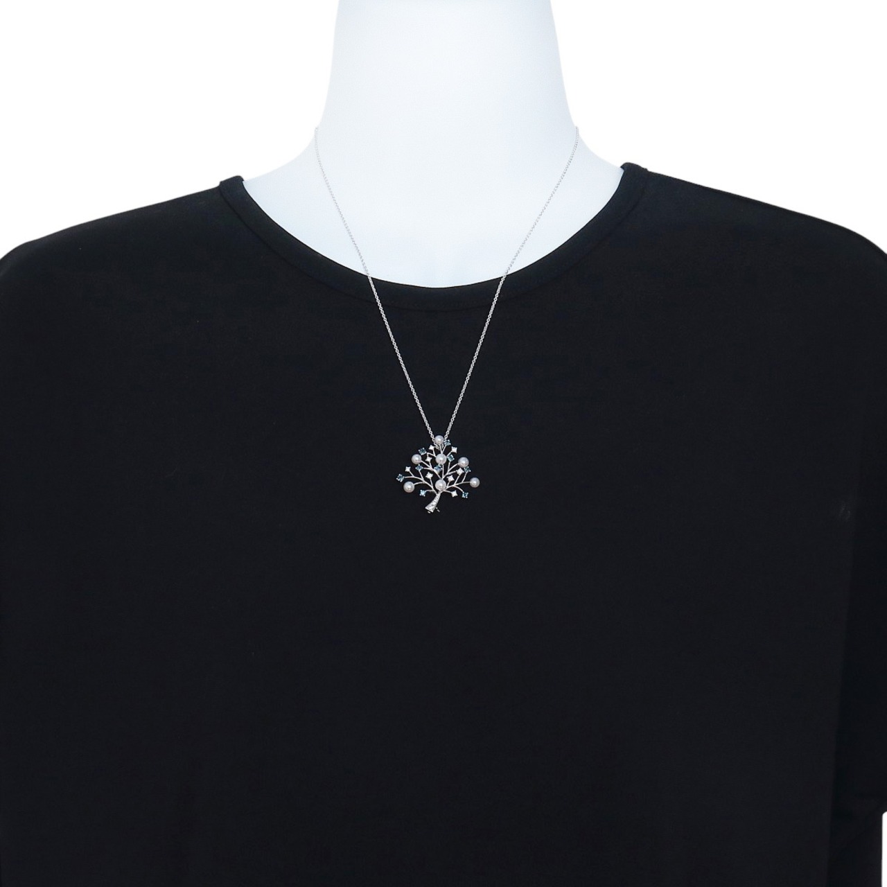 ミキモト ダイヤ アレキサンドライト パール ネックレス ペンダント兼ブローチ ツリーモチーフ アコヤパール3.8mm~4.4mm 45cm K18WG 新品仕上げ済 MIKIMOTO【22791】