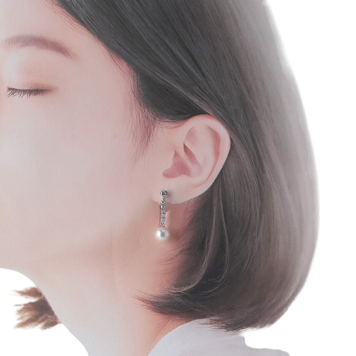 ミキモト パール ダイヤ イヤリング アコヤパール9.0mm 0.58ct K18WG 揺れるデザイン 新品仕上げ済 MIKIMOTO【22772】