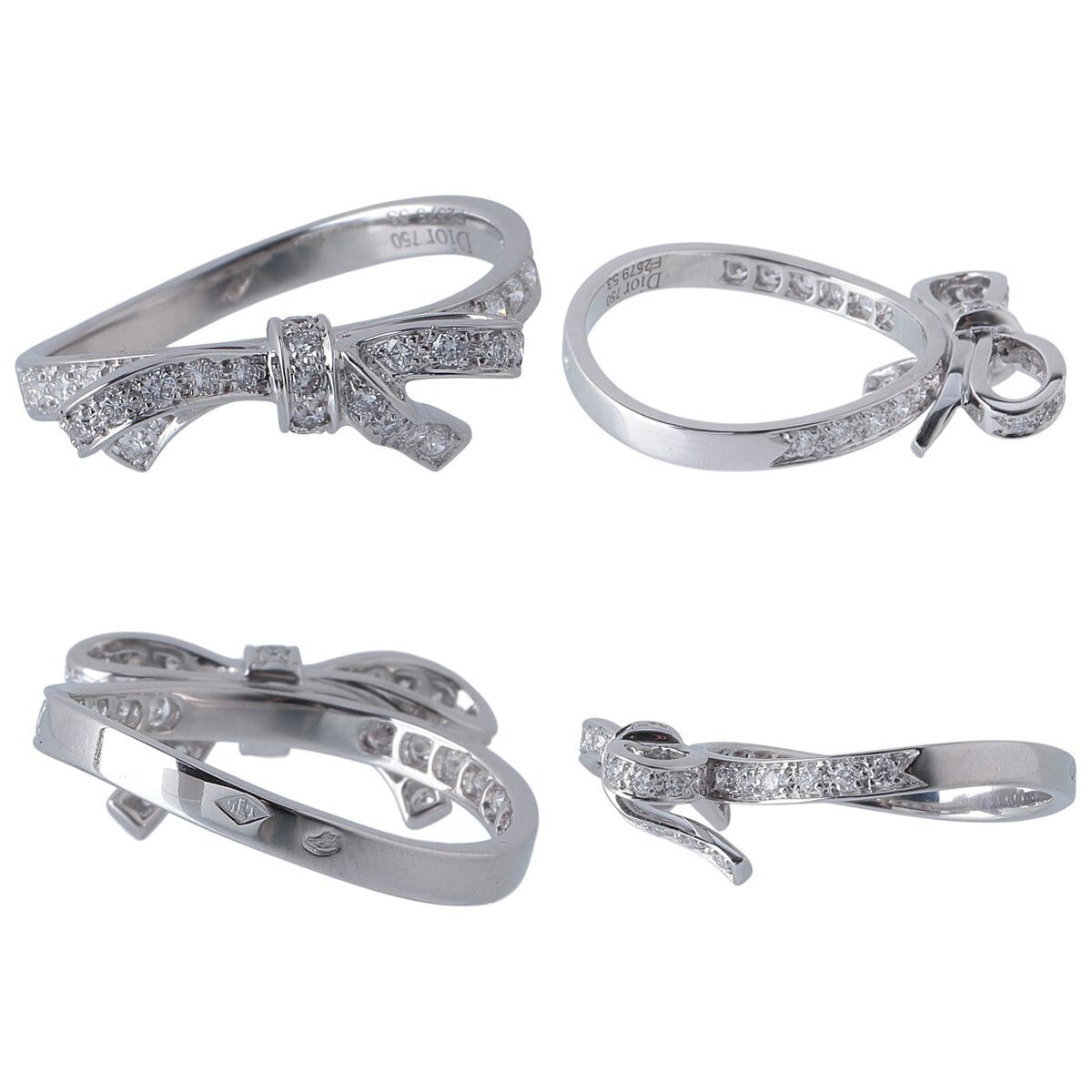 ディオール ボウ ダイヤ リング リボン #53 750WG 新品仕上げ済 Christian Dior【23512】