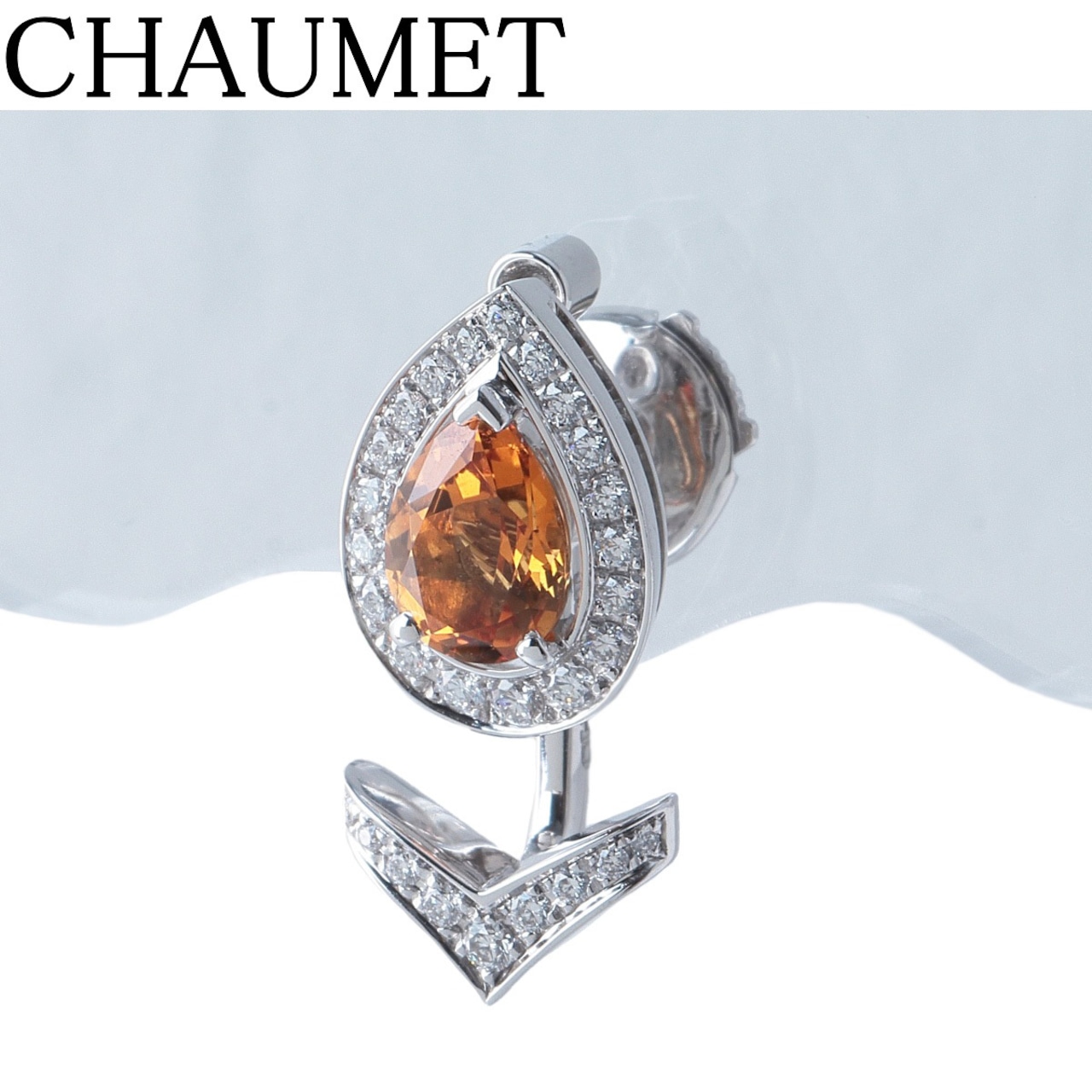 ショーメ ジョゼフィーヌ エグレット シトリン ダイヤ ピアス シングル Au750WG 新品仕上げ済 CHAUMET【23809】