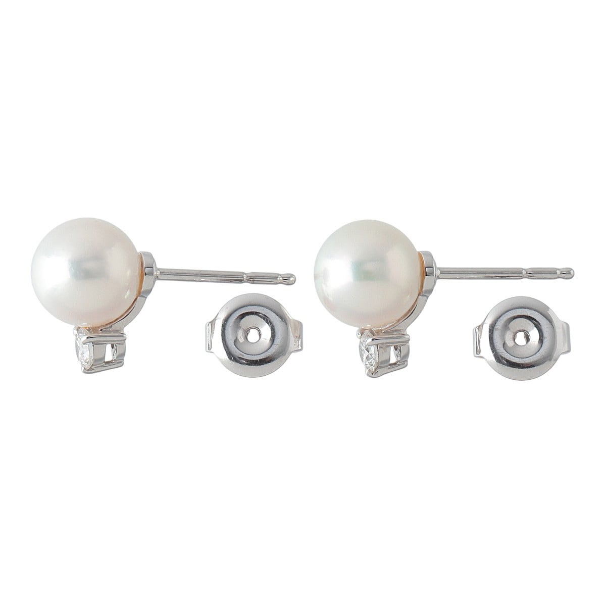 ミキモト ダイヤ パール ピアス 現行モデル PE-955PU型 アコヤパール7.5mm K18WG 新品仕上げ済 MIKIMOTO【23703】