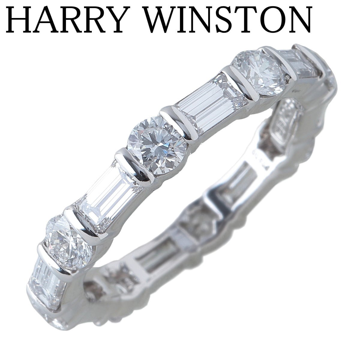 ハリーウィンストン フルエタニティ ダイヤ リング ラウンド エメラルドカット バーセット 7.5号~8号 PT950 箱 購入明細書 HARRY WINSTON【23704】