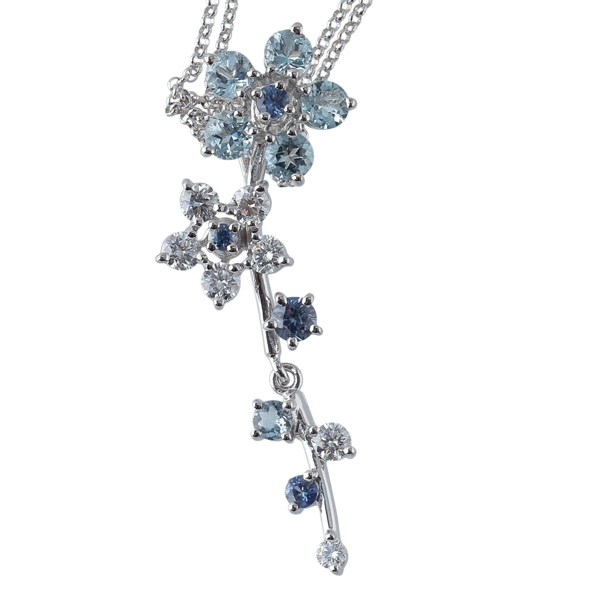 【商品名】フラワーモチーフ マルチストーン ダイヤ タンザナイト アクアマリン ペンダント ネックレス