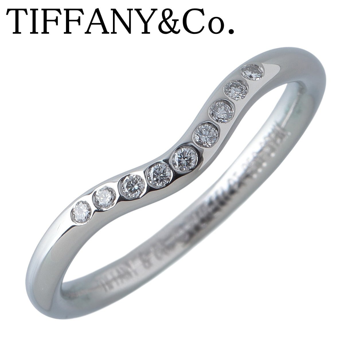 ティファニー ダイヤ リング カーブド 9PD 10号弱 幅2.0mm PT950 新品仕上げ済 TIFFANY【23952】