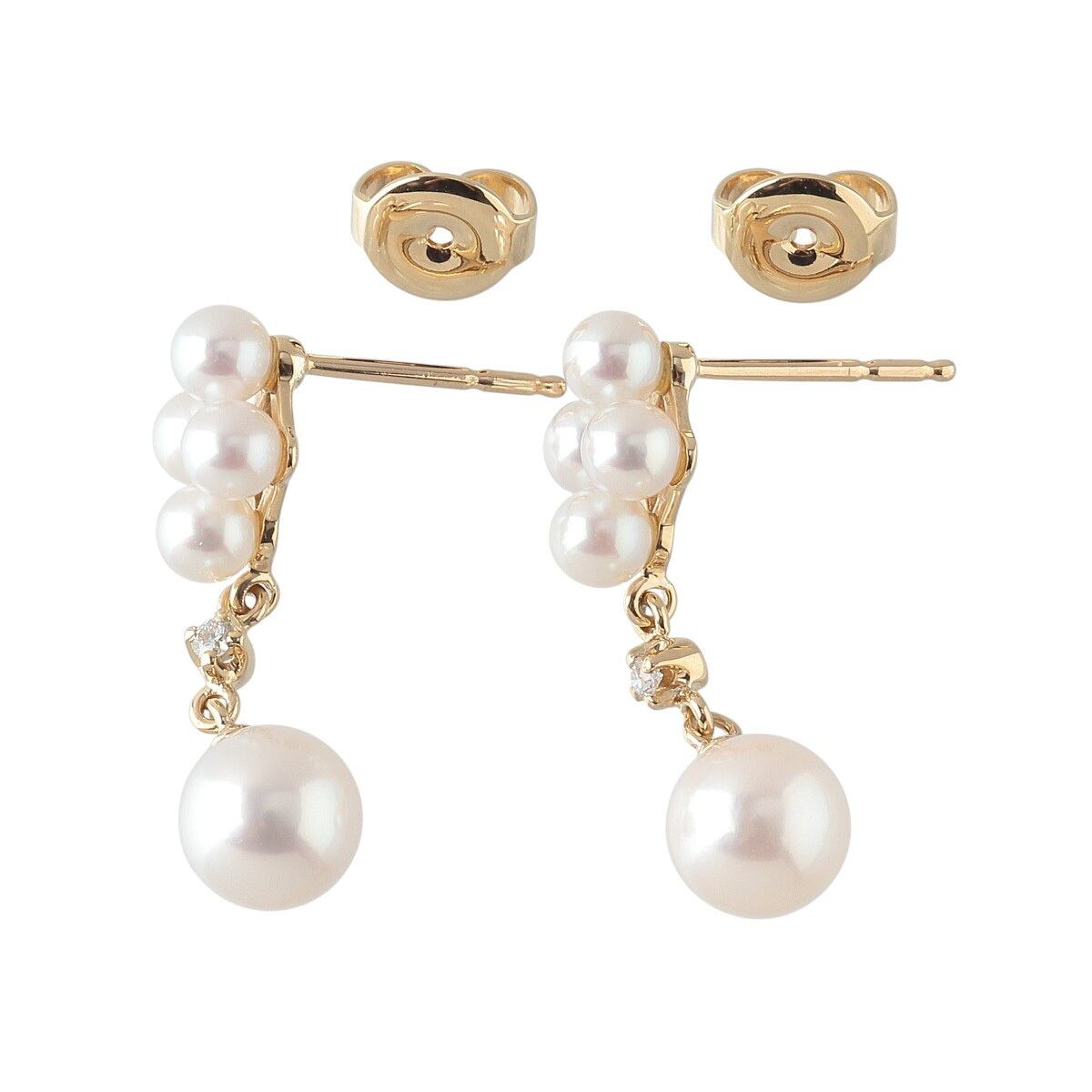 ミキモト ベビーパール ダイヤ ピアス 現行モデル PE-768PK型 アコヤパール3.5mm~6.7mm K18YG 新品仕上げ済 MIKIMOTO【23839】