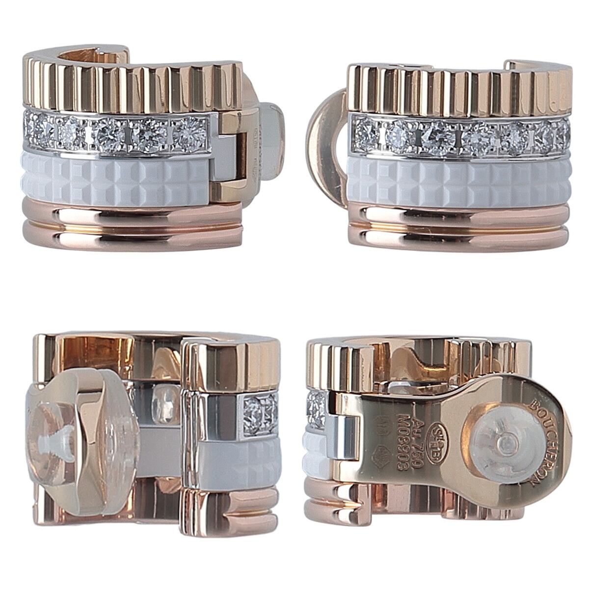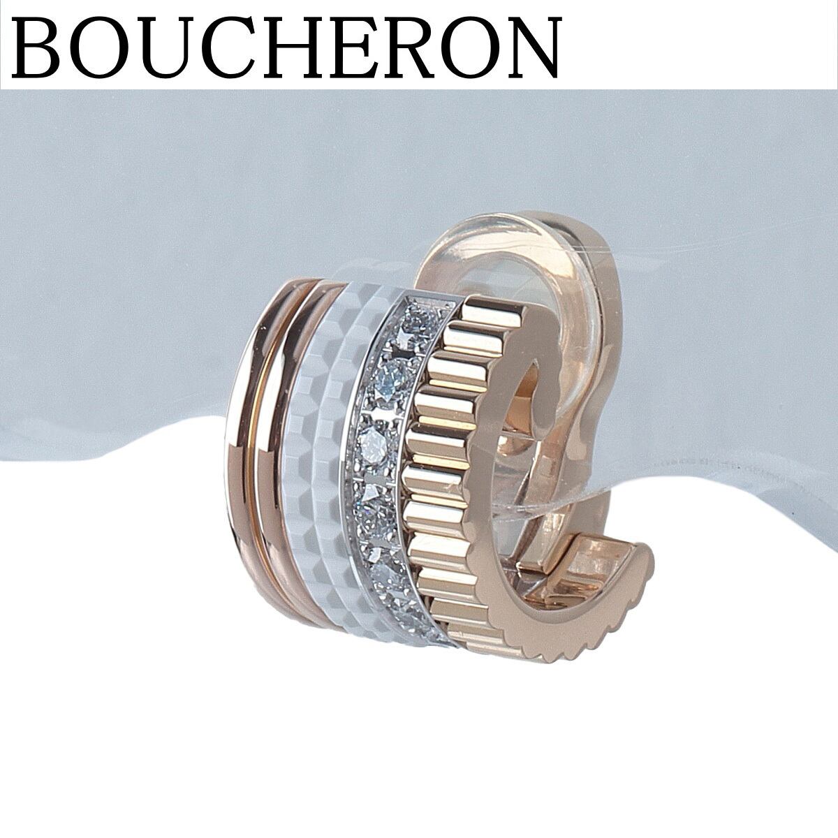 ブシュロン キャトル ホワイト ダイヤ イヤリング シングル 現行モデル 定価495,000円 Au750PG/WG/YG/CE 袋 新品仕上げ済 BOUCHERON【23887】