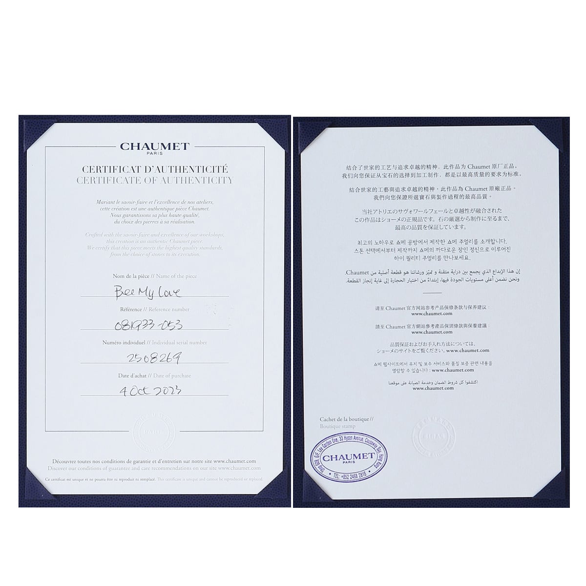 【付属品】保証書(2023年10月香港 汚れ小) 箱