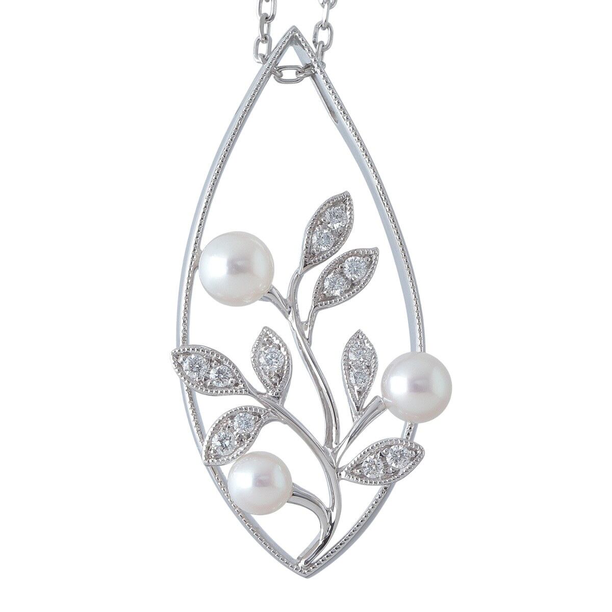 ミキモト ダイヤ パール ネックレス リーフモチーフ アコヤパール3.5mm~4.5mm 42cm K18WG 新品仕上げ済 MIKIMOTO【24609】