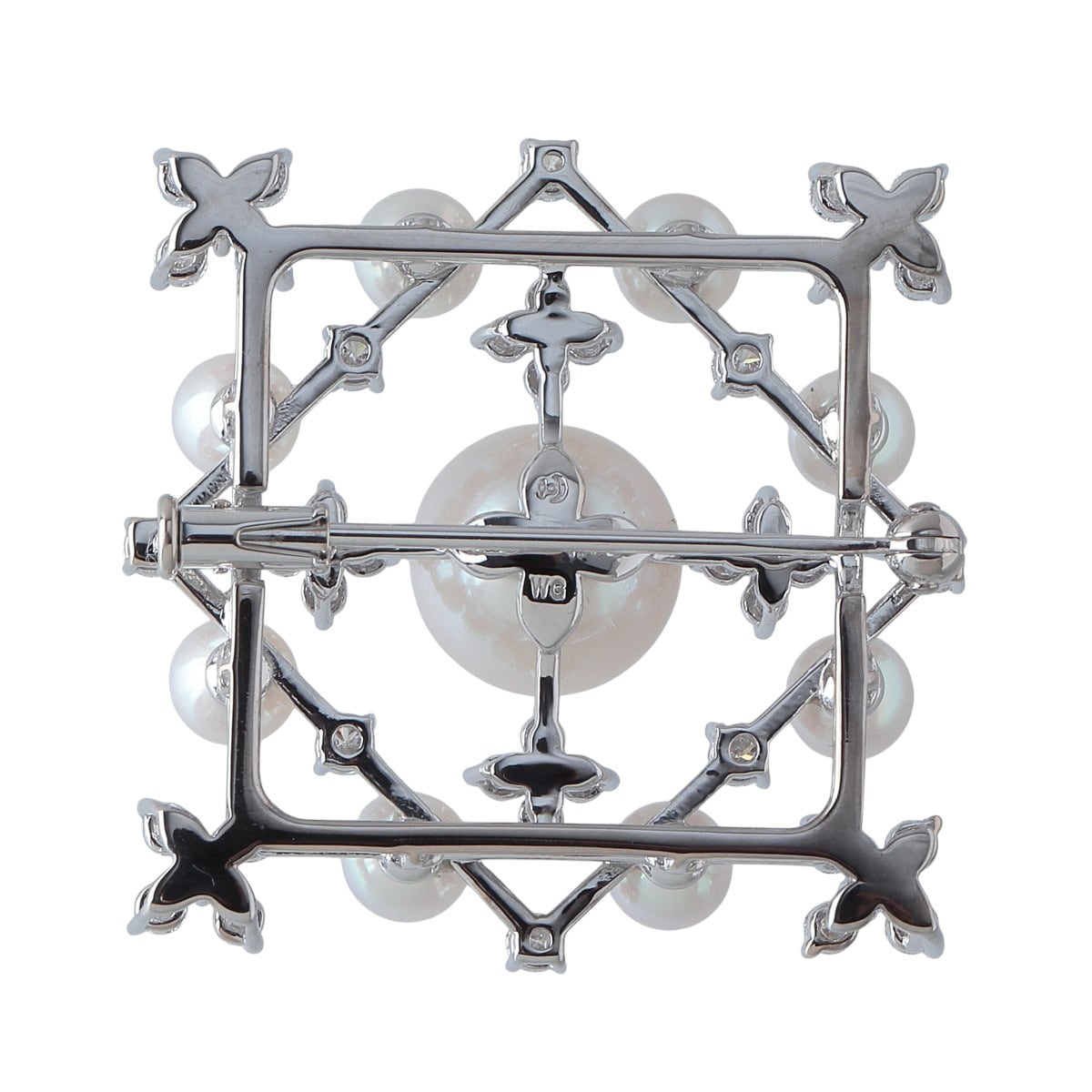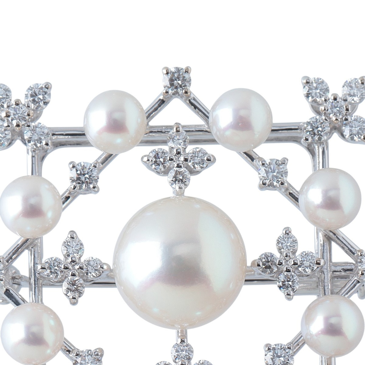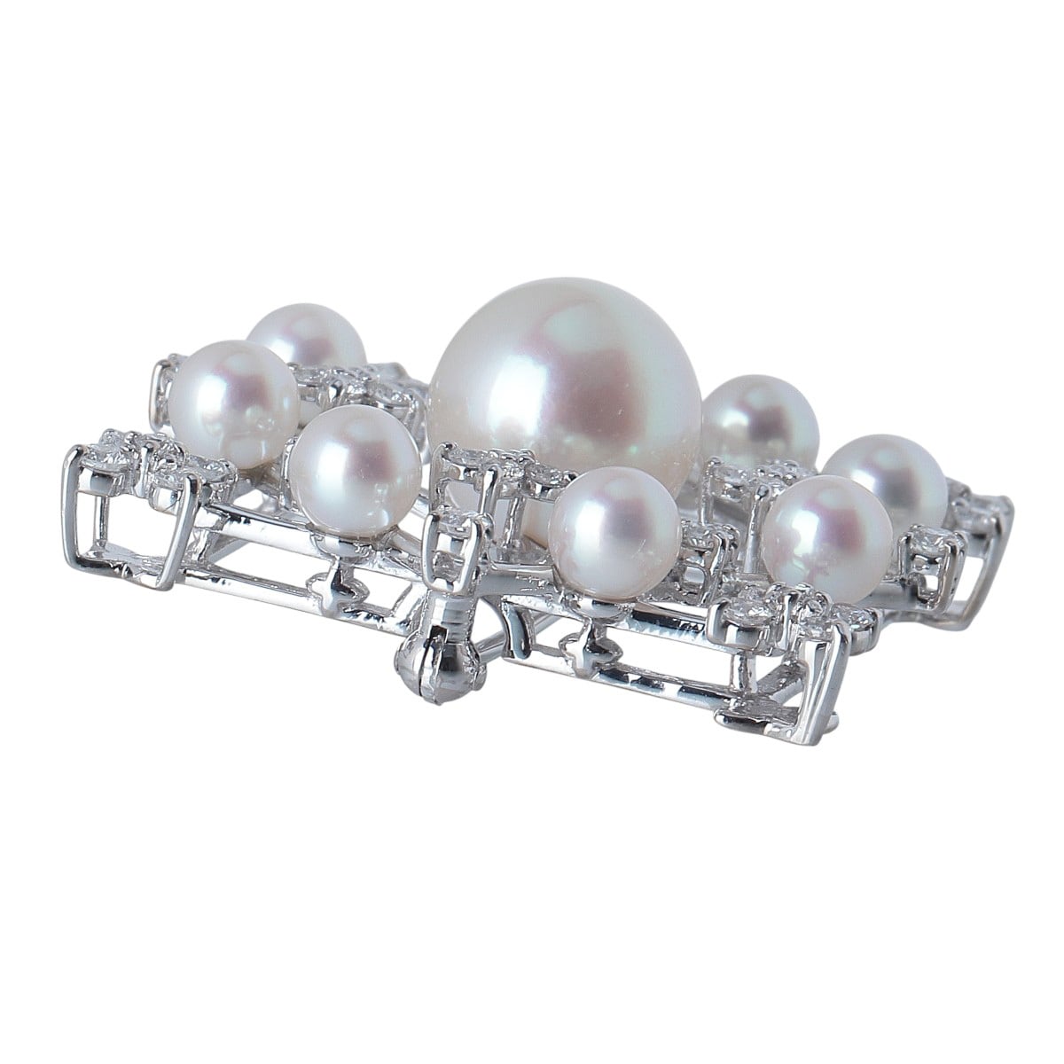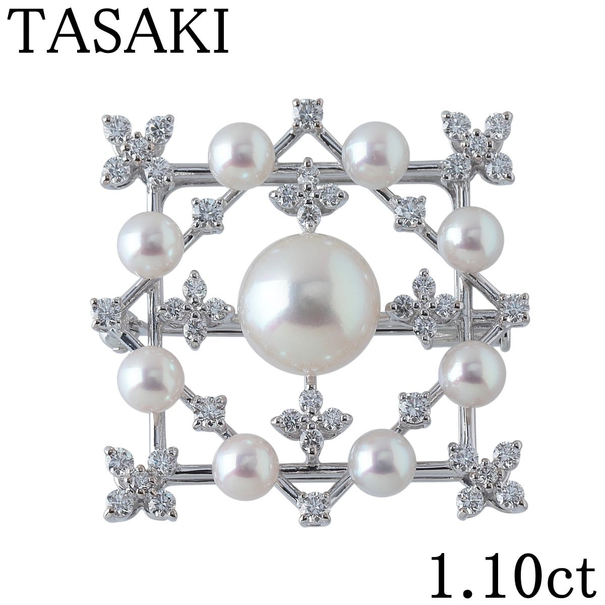 タサキ パール ダイヤ ブローチ ダイヤ1.10ct K18WG パール4.8mm-10.0mm TASAKI 田崎真珠【24627】