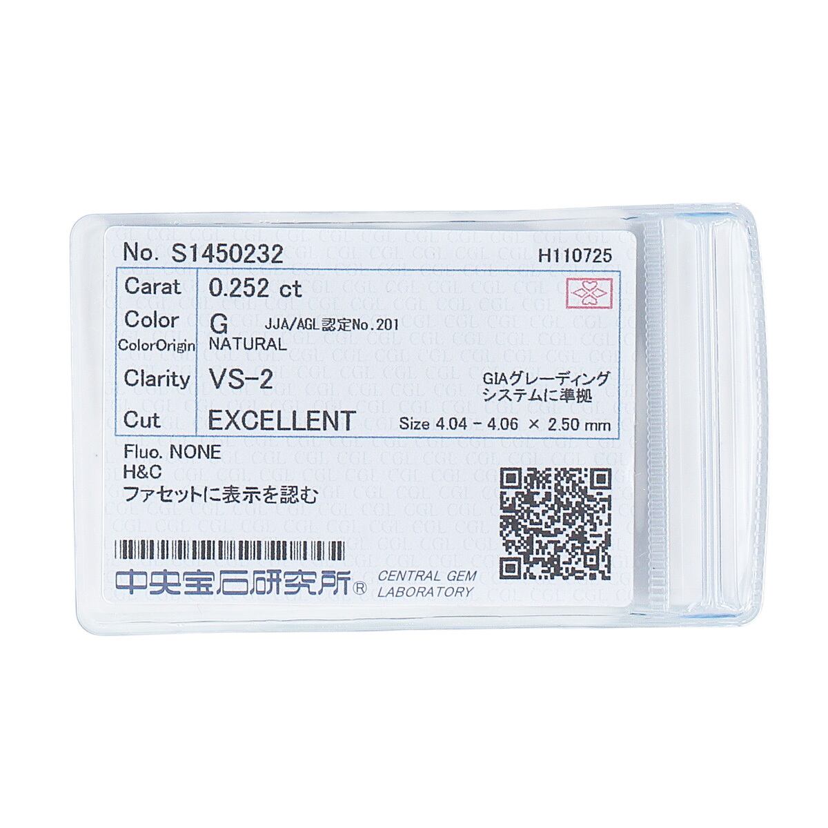 【宝石】ダイヤモンド0.252ct G-VS2-EX ダイヤ直径4.0mm