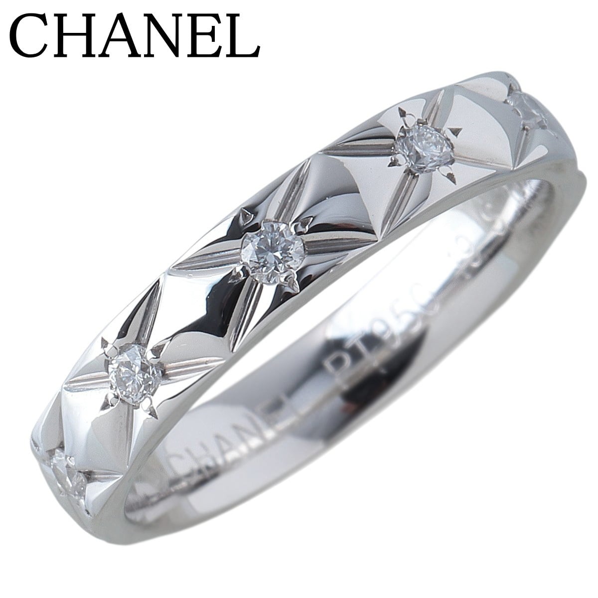 シャネル ダイヤ リング マトラッセ ミディアム フルダイヤ 10PD #48 幅3.4mm PT950 新品仕上げ済 CHANEL【24644】