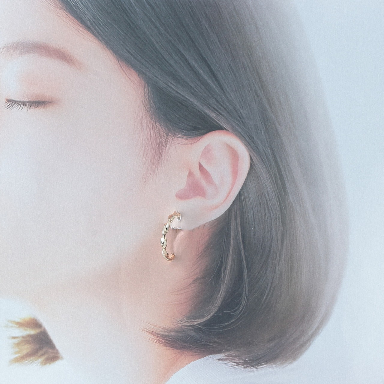 ウノアエレ ツイスト フープ ピアス 750YG 新品仕上げ済 UNOAERRE【24660】