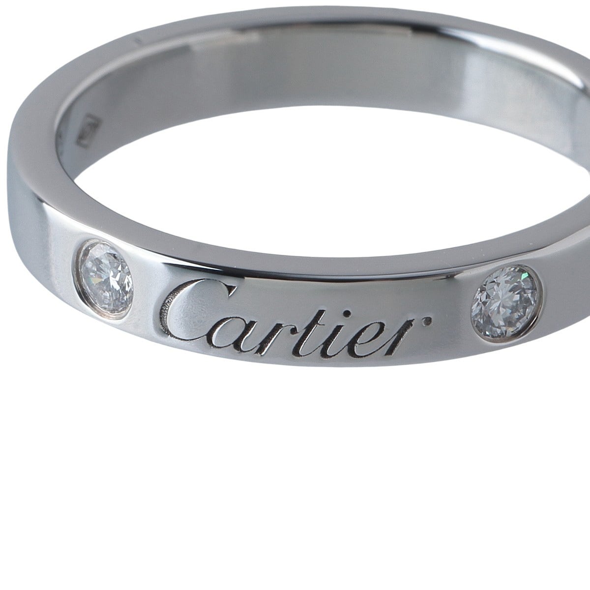 カルティエ ダイヤ リング エングレーブド Cドゥカルティエ #49 2PD 幅3.1mm Pt950 新品仕上げ済 Cartier【24845】
