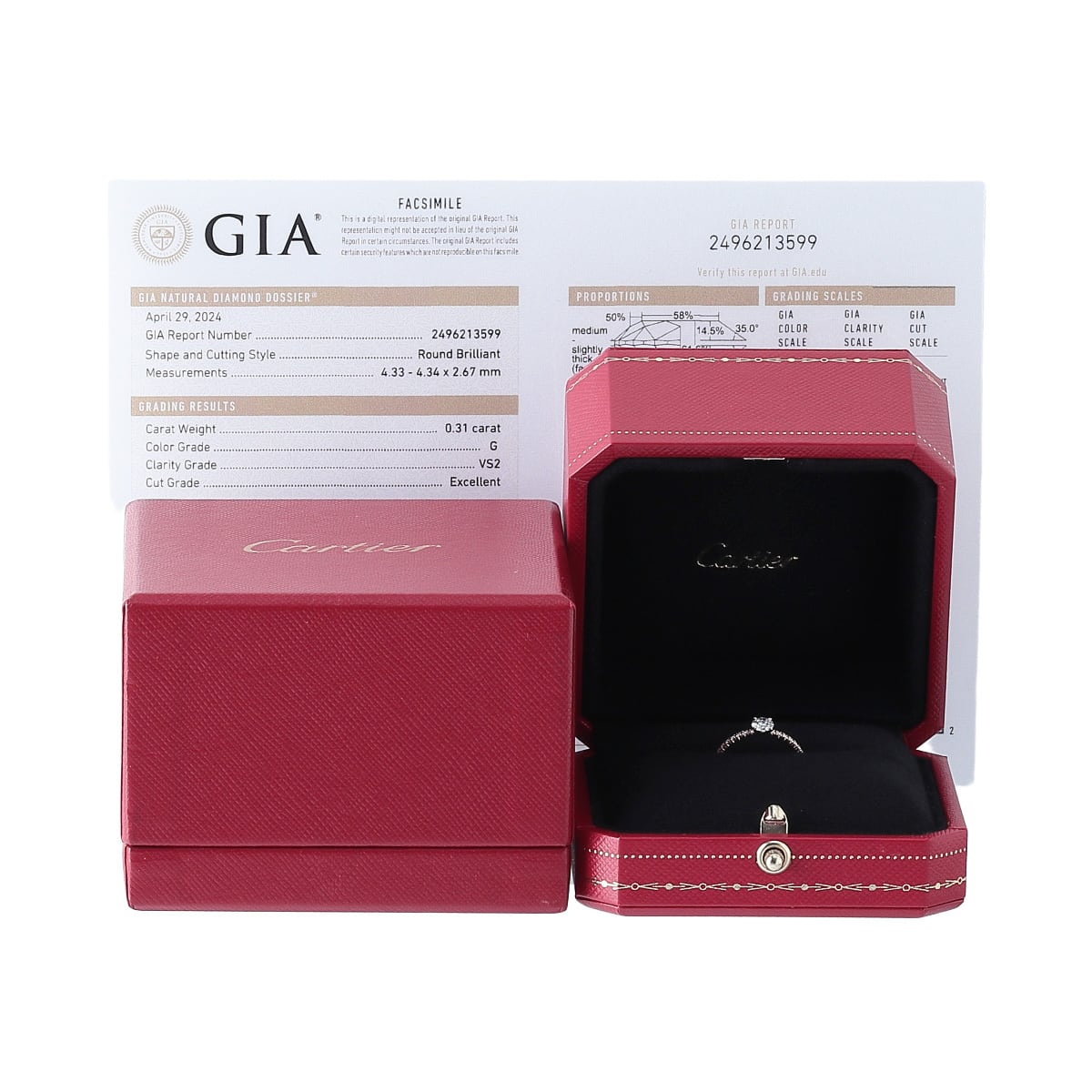 カルティエ エタンセル ソリテール リング ダイヤ0.31ct G-VS2-3EX #49 Au750PG GIAレポート 箱 新品仕上げ済 Cartier【24770】