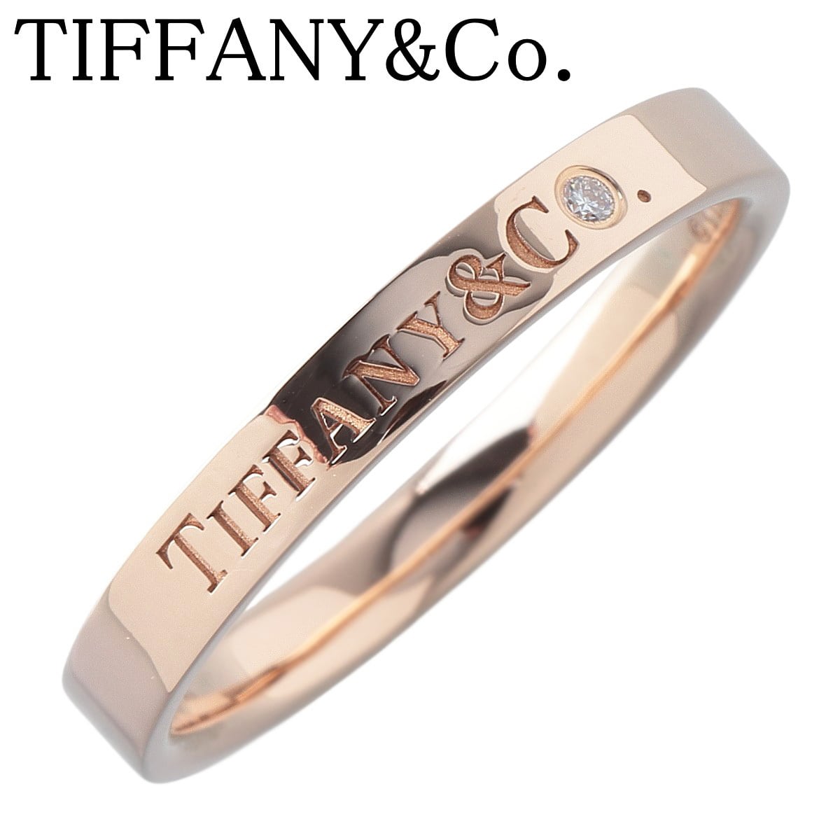 ティファニー ダイヤ リング フラットバンド 1PD 16.5号 幅3.9mm Au750PG ショップカード(2024年) 新品仕上げ済 TIFFANY【24665】