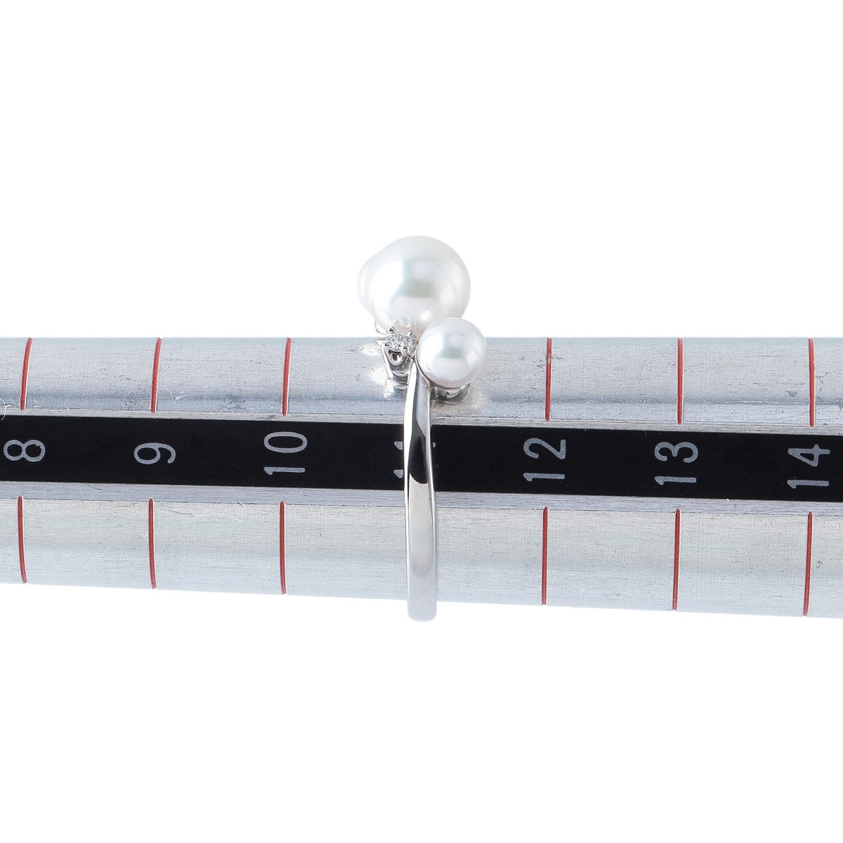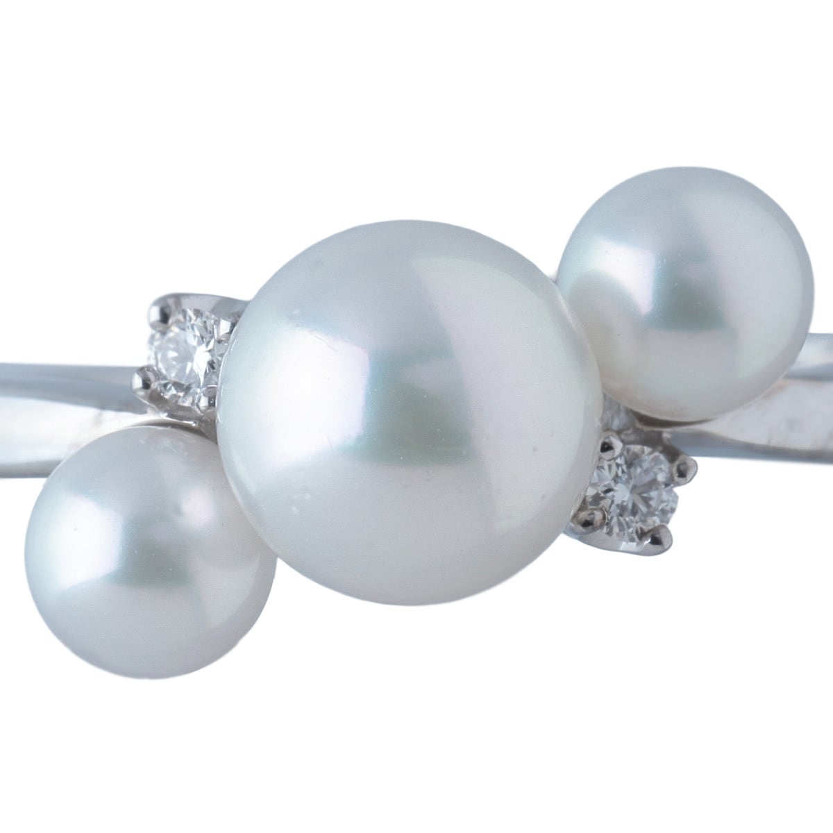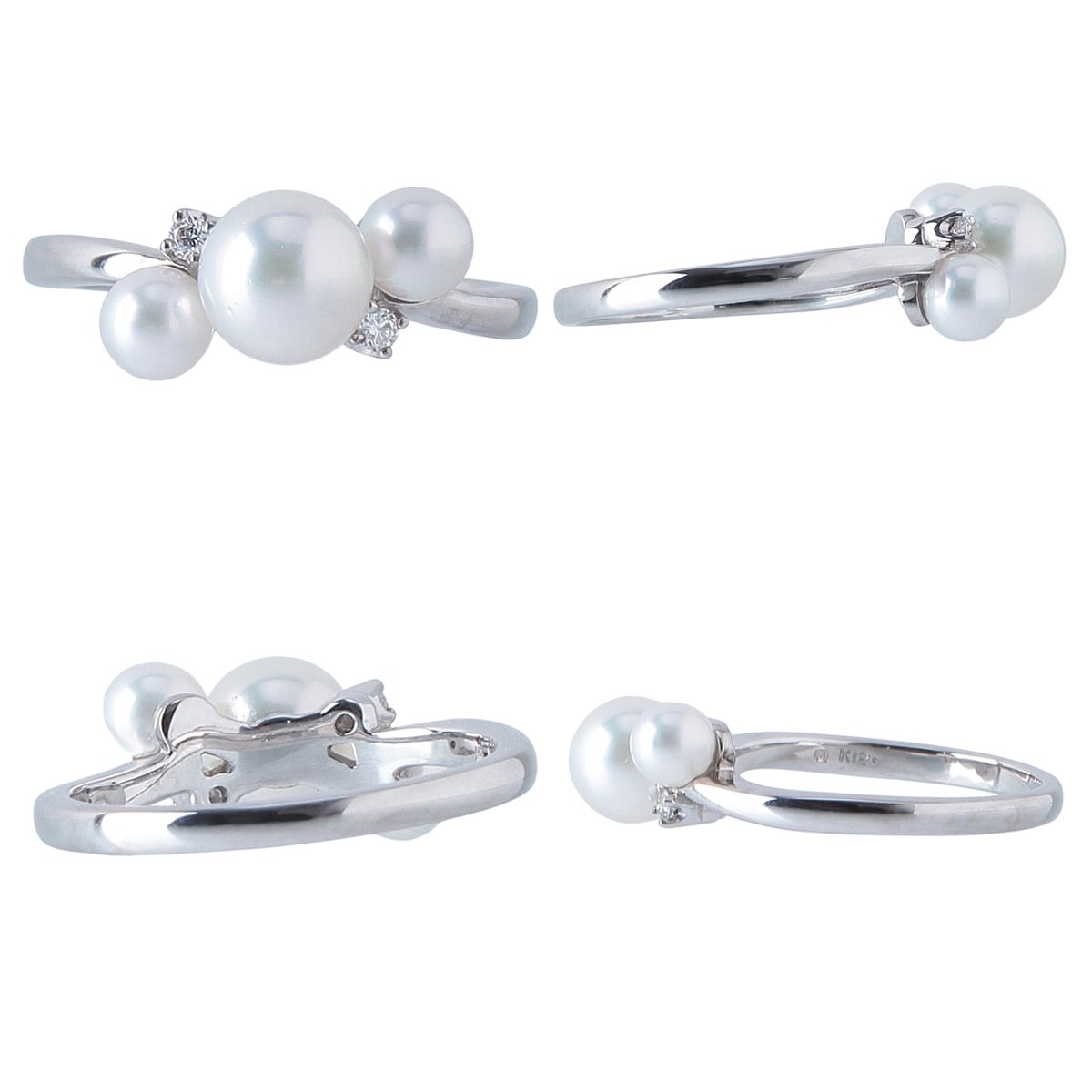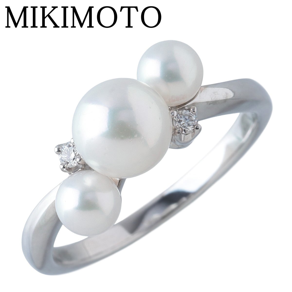 ミキモト パール ダイヤ リング 現行モデル アコヤパール4.3mm~6.5mm 11号 K18WG 新品仕上げ済 MIKIMOTO【24673】