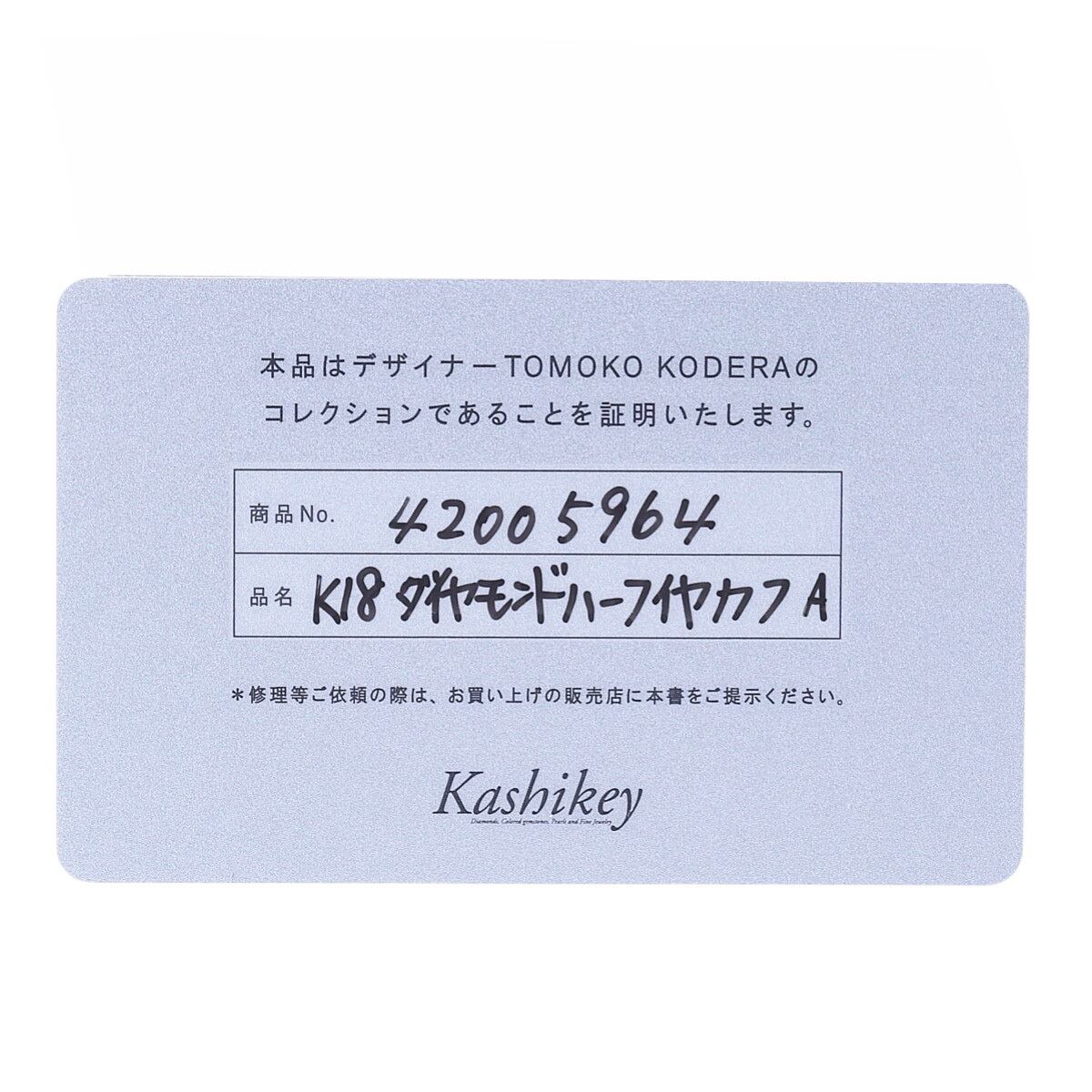 小寺智子 ダイヤ イヤーカフ イヤリング シングル フープ 0.11ct K18YG 鑑定書 ポーチ 新品仕上げ済 TOMOKO KODERA トモコ コデラ【25533】