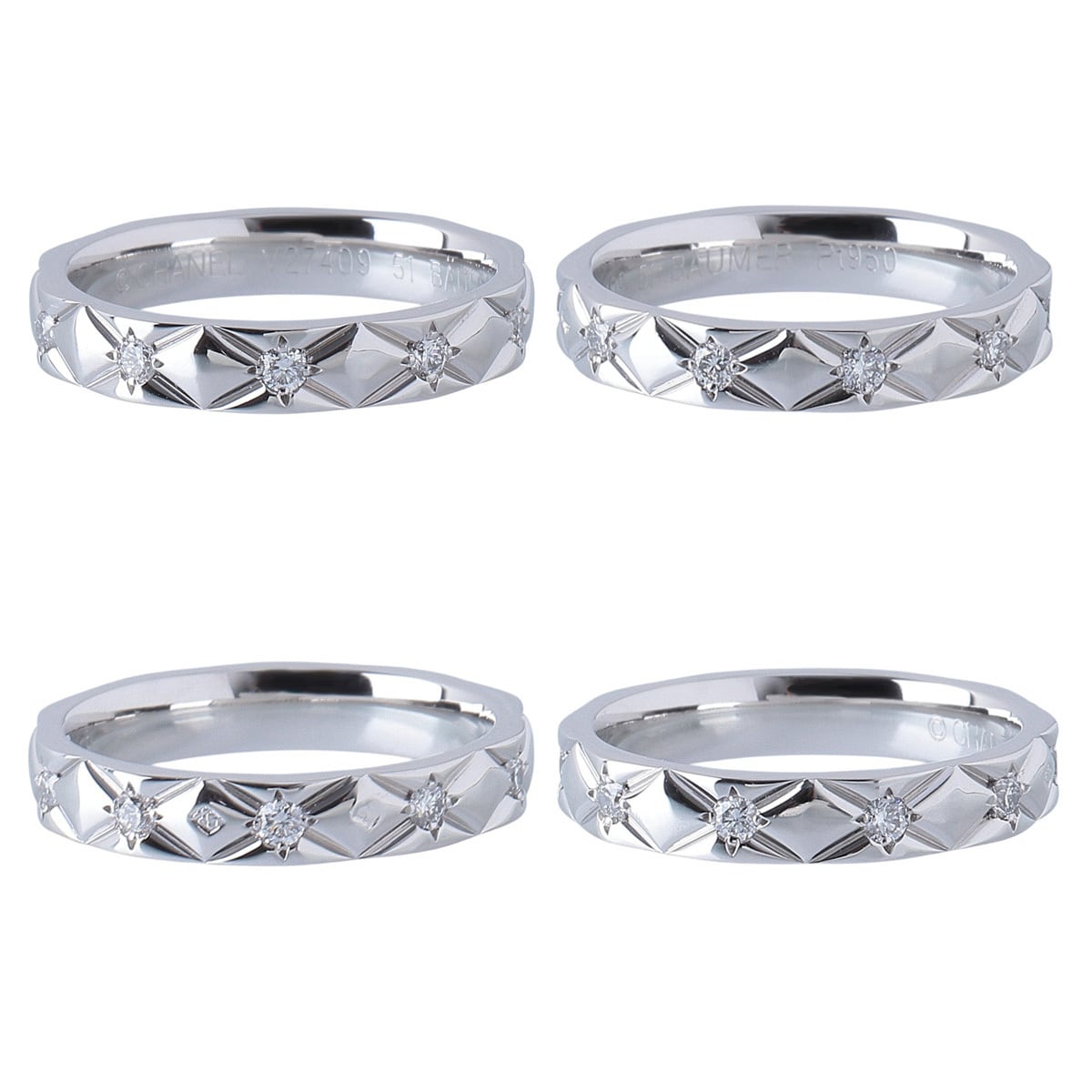シャネル ダイヤ リング マトラッセ ミディアム フルダイヤ 10PD #51 幅3.5mm Pt950 新品仕上げ済 CHANEL【25815】