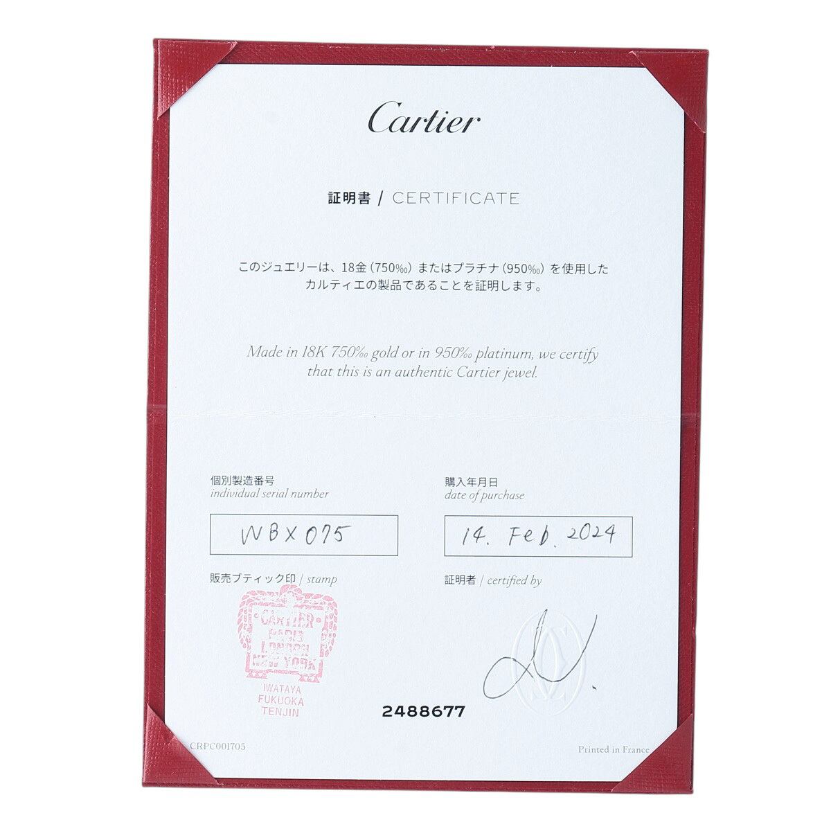 【付属品】保証書(2024年2月岩田屋福岡天神)