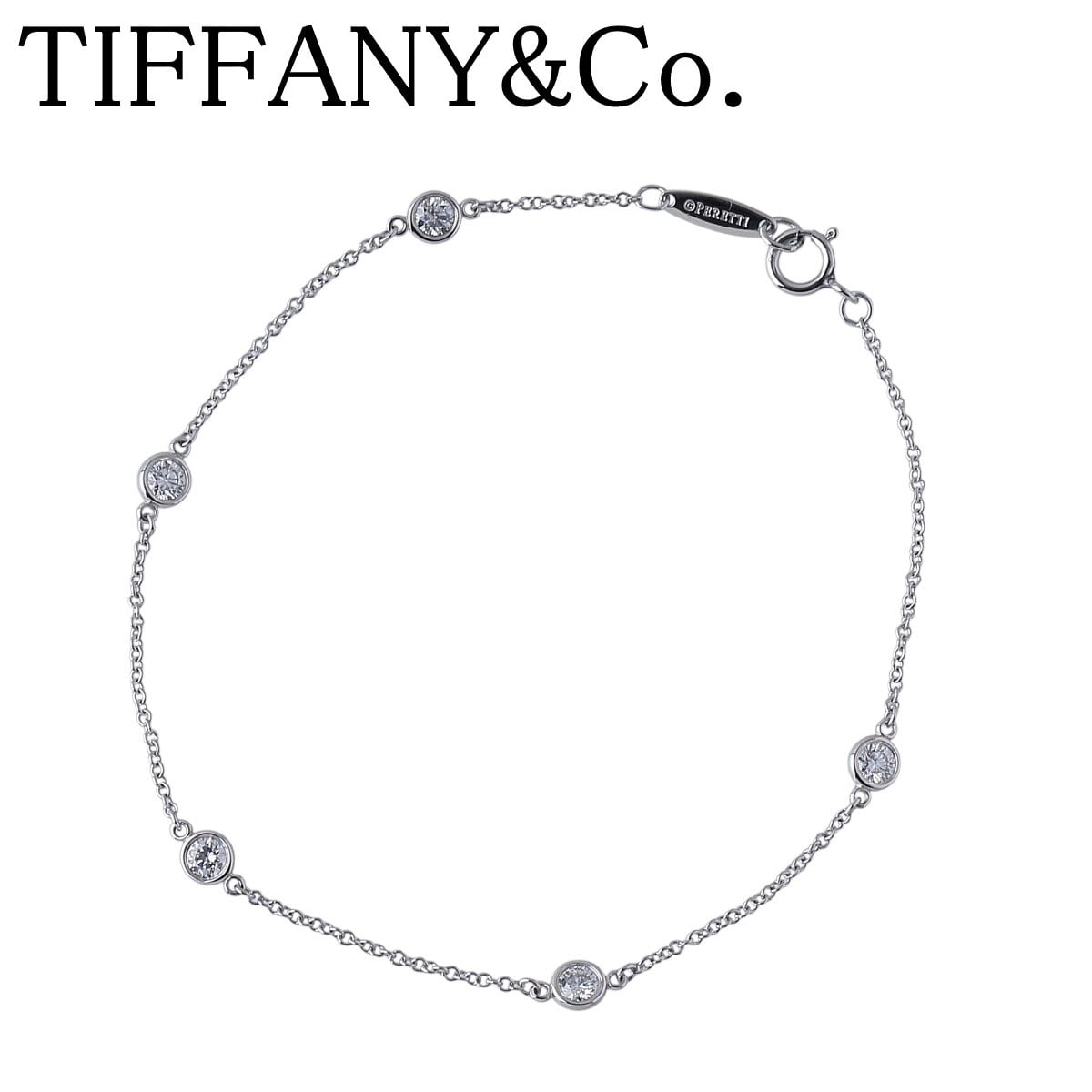 ティファニー バイザヤード ブレスレット 5PD 枠3.8mm 18cm PT950 箱 新品仕上げ済 TIFFANY【25833】